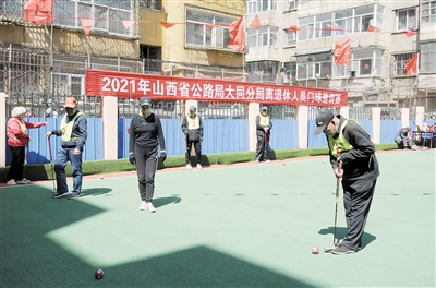 为丰富广大离退休人员的精神文化生活,由大同公路分局主办,晋能控股煤业集团、大同军干所等多家单位参与的“离退休人员门球邀请赛”近日在大同公路分局老年活动中心门球场举行,共有40多名选手参加比赛,精彩的比赛赢得观看的社区居民的阵阵掌声和欢呼声。 柴立峰摄