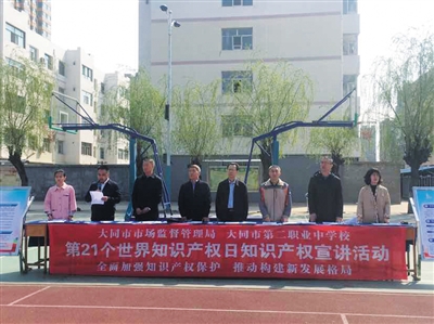 本报讯 (记者 曹珂) 4月23日上午,大同二职中利用课间活动时间,与大同市市场监督管理局共同举办主题为“全面加强知识产权保护、推动构建新发展格局”的世界知识产权日宣讲活动。这是该校在建设“山西省中小学知识产权教育试点学校”的基础上,向打造“山西省中小学知识产权教育示范学校”迈出的坚实一步。