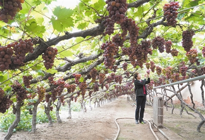 4月29日,滦州市东安各庄镇前商家林村的果农在采摘成熟的葡萄。近期,河北省滦州市东安各庄镇种植的暖棚葡萄进入成熟期,当地果农忙着采摘新鲜的葡萄,供应市场。近年来,滦州市东安各庄镇引导农民采取“合作社+农户”的模式,因地制宜发展有采暖设施的暖棚,种植葡萄等水果,带动农民增收,助力乡村振兴。 新华社记者 杨世尧摄