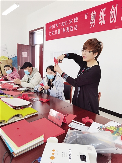 文化润疆是一项长期、系统、宏大的民心工程,自第三次中央新疆工作座谈会召开以来,市援疆办和市援疆指挥部精心组织了一系列文化活动和培训课程。此次“对口支援 文化润疆”系列文化活动为期4天,主题为“大奇同行 文化润心”,得到市委组织部、市委网信办、市发改委、市文联、民进大同市委等单位大力支持。市委网信办副主任黄姝琦和市青年志愿者协会理事长吕志刚为当地机关工作人员进行了《理清三个关系,用好网络媒体》及《重视网络舆情更要重视本地网络论坛案例分享》课程培训;大同文联办公室主任王小平的“中国写意花鸟鉴赏与创作浅析”课程,让农场书画爱好者和农场小学师生受益匪浅;非遗传承人杨雪飞和侯艳芳为奇台农场的女性朋友传授了盘扣和布艺制作方法,不仅丰富了大家的生活,还增加了创收的技能;市工艺美术大师赵雪梅的剪纸课程,让学员们感受到大同剪纸技艺的精湛。