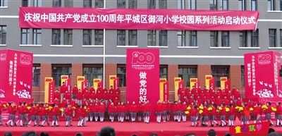 本报讯 (记者 孙露) “没有共产党就没有新中国……”近日,在平城区御河小学水泊寺分校校园内,一首首红色经典革命歌曲在校园上空回荡,由此拉开了庆祝建党100周年校园系列活动的帷幕。