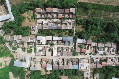 陕西省西安市长安区王莽街道小峪口村位于秦岭山脉北麓,自然环境优美。2020年起,王莽街道积极探索乡村发展新模式,通过盘活废弃宅院、引进非物质文化遗产等方式,打造集非遗传承、农旅融合、文创发展为一体的小峪口村“非遗乡集”,进一步助力乡村振兴。图为5月7日拍摄的西安市长安区王莽街道小峪口村(无人机照片)。 新华社记者 赵英博摄