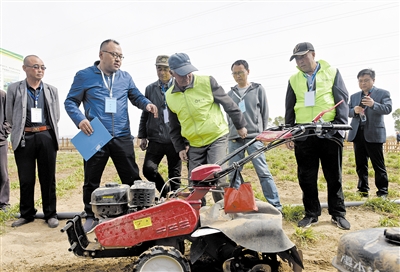 去年以来,作为我市高素质农民培训学院黄花实训及技能考评基地,云州区唐家堡有机黄花标准化种植基地开展高素质农民培训84期,参加实训及技能考评的农民有5980人。图为技术人员正在向学员讲解微耕机的使用方法。