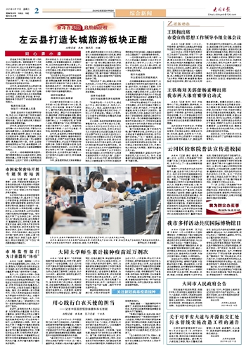 本报讯 (记者 董芳) “在学校就能接种新冠病毒疫苗,非常方便,接种后也多了一份安全保障。”近日,在大同大学天翔体育馆新冠病毒疫苗集中接种点,该校医院组织40余名医务人员为学生及教职工接种第二剂疫苗,共计1350剂次。截至目前,该校师生累计已接种疫苗近万剂次。