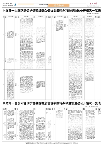 中央第一生态环境保护督察组群众信访举报转办和边督边改公开情况一览表