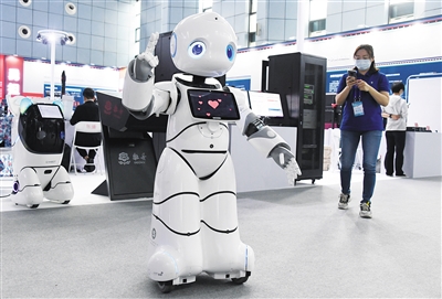 5月24日,在北京科技周活动主场室内主题展区,服务机器人在跳舞。5月22日至28日,2021年全国科技活动周暨北京科技周活动在中关村国家自主创新示范区展示中心举行。