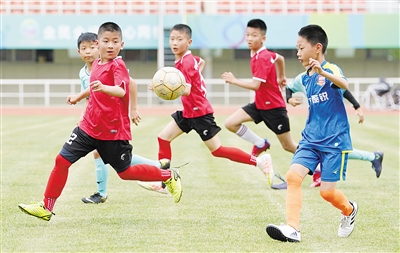 六一儿童节即将到来之际,在宝鸡市手拉手青少年足球公益促进中心的牵线下,将举办第十四届全运会足球比赛的宝鸡市体育场于5月23日迎来一批小运动员——来自陕西省千阳县燕伋小学的12名学生。他们在天然草坪足球场上接受了宝鸡酷锐青少年足球俱乐部专业教练的培训指导,并与当地的小球员切磋球技。图为5月23日,在宝鸡市体育场,陕西省千阳县燕伋小学的学生与宝鸡酷锐青少年足球俱乐部小球员切磋球技。