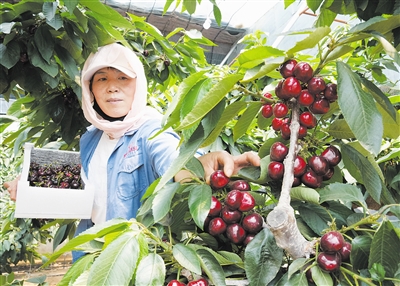近日,河北省秦皇岛市海港区驻操营镇的设施樱桃陆续成熟,果农开始适时采摘上市。近年来,秦皇岛市海港区根据当地气候和土壤特点,通过“合作社+基地+农户”的方式,发展设施樱桃种植,带动农民增收致富,助力乡村振兴。