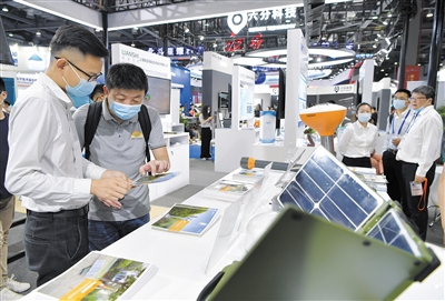5月26日,观众在第十二届中国卫星导航成就博览会上参观展品。
