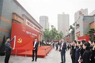 6月3日,党员在中国共产党第一次全国代表大会纪念馆外重温入党誓词。