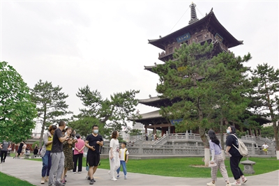 端午假期,天气舒爽宜人,我市各景区景点吸引了众多市民和周边地区游客参观游览。图为游客在华严寺景区游览。