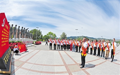在庆祝中国共产党成立100周年之际,我市许多红色景点成为各界人士重温激情岁月、感怀时代变迁的体验地,成为年轻人聆听红色故事、致敬英雄模范的“打卡地”。图为6月20日,市学雷锋联组协会志愿者来到平型关大捷纪念馆,重温入党誓词、聆听专题党课、回顾党的光辉历史,深切缅怀革命先烈的丰功伟绩。