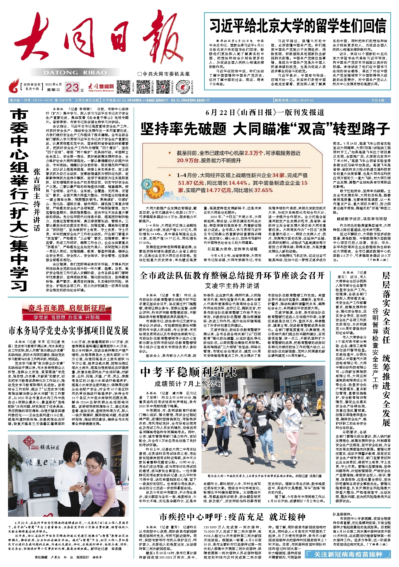 6月22日《山西日报》一版刊发报道~~~