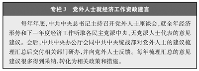 各民主党派、无党派人士紧紧围绕国家中心工作,充分发挥人才荟萃、智力密集、联系广泛等优势,积极参政议政、建言献策,为推进国家各项事业发展作出了重要贡献。