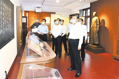 25日下午,习近平带领中央政治局同志来到北大红楼,参观“光辉伟业 红色序章——北大红楼与中国共产党早期北京革命活动主题展”,重温李大钊、陈独秀等开展革命活动、推动马克思主义在中国早期传播、酝酿和筹建中国共产党等革命历史。展厅内,一张张图片、一件件文物,全面展现了那个时期的光辉历史。习近平不时停下脚步,询问相关细节。他指出,北大是新文化运动的中心和五四运动的策源地,最早在我国传播马克思主义思想,也是我们党在北京早期革命活动的历史见证地,在建党过程中具有重要地位。要加强红色资源保护和利用,尊重历史事实,准确评价历史,正确学史用史。