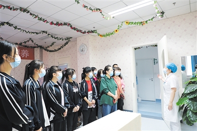 座谈会后,师生代表听取了胎教、早教专题讲座,市一医院护理部专家结合多年工作经验,为师生们详细讲解了胎教、早教相关知识。随后,全体师生来到产科门诊、儿童保健科、产科服务等科室进行实地参观,现场学习实操技能。师生们非常珍惜这次参观学习的机会,踊跃提问,并与现场专家进行交流。大家纷纷表示,在今后的工作中将学以致用,通过不断的积累和锻炼,努力提升自身能力和综合素养。