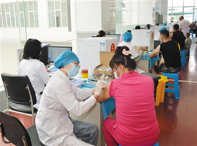 目前,我市已恢复新冠病毒疫苗第一剂次接种工作,广大市民可以自行预约前往各接种点接种。市疾控中心呼吁,接种新冠病毒疫苗是当前预防新冠病毒感染最有效的措施。图为7月5日,市民在市中医院新冠病毒疫苗接种点接种第一剂次疫苗。