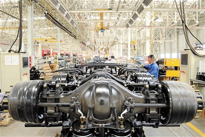 连日来,陕汽大同专用汽车有限公司开足马力赶订单生产。为满足市场需求,该公司优化生产工序及人力资源配置,最大限度实现流水作业,提高装配效率。今年前6个月,共产销重型专用汽车11682辆,实现产值32.17亿元,实现时间过半、任务过半。 本报记者 李冬宾摄