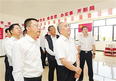 七月八日,省委书记、省人大常委会主任林武在阳高县龙泉镇花苑村党群服务中心调研乡村振兴和基层党建工作情况。 山西日报记者 史晓波摄