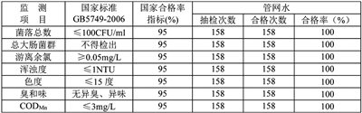 1. 10个采样点水质常规项目监测结果:水源水水质检验合格率100%; 出厂水水质检验合格率(100%);管网水水质检验合格率100%。