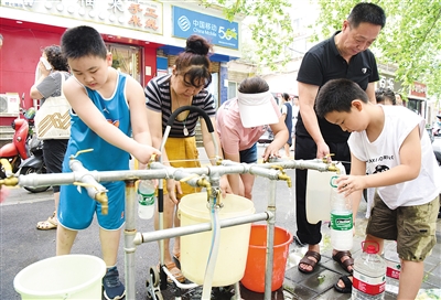 7月22日,市民在郑州市经七路临时取水点接水。目前,郑州市在断水区域共设置41处临时取水点,解决群众基本生活用水。