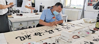 活动中,我市书画家张新明、张东怀、李键、籍升等现场挥毫泼墨,为官兵们送上祝福。