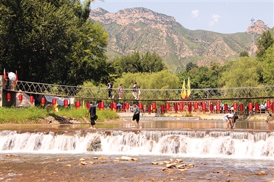 当乘坐花塔旅游观光车驶入隧道的那一刻,记者仿佛看到了陶渊明忽逢桃花源的那一霎,“山有小口,仿佛若有光。便驱车,从口入。”开始想象冲出黑暗后的光明。循着盘山小路而下,一道弯,两道弯……蜿蜿蜒蜒的小路上不时有耷拉的核桃枝触摸人们的脸庞。此时,身旁的小女孩用稚嫩甜美的声音说:“妈妈,你看你看,有核桃。”在声声惊叹中,从句句疑问中,带着点点期盼,开始探索这密林深处如桃花源般恬静的小乡村。
