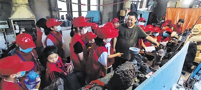 8月1日,30多名大同日报小记者走进开源一号文化创意产业园火山石文创工作室,共同了解非遗文化——中国火山石雕刻。
