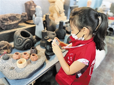 在专门为小记者准备的实操观摩环节中,刘坚老师通过精彩的技艺表演,展示了陶泥成型、火山石雕刻,小记者们从中受益匪浅。精彩丰富的活动内容,也为他们的暑期生活带来多重享受。