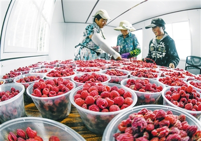 河北唐山遵化市农民根据市场需要,积极调整果品种植结构,引进树莓果树种植成效显著,实现了当年种植、当年产果,当年亩均增收4000多元。 新华社记者 刘满仓摄