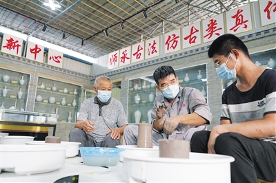 8月10日,在内丘县一家邢白瓷企业,残疾人耿辉敏(中)用手语给残疾人同事传授邢白瓷制作技艺。近年来,河北省邢台市内丘县残疾人联合会通过集中就业、个体就业及技能培训、扶持创业等方式,帮扶残疾群众创业就业。截至目前,全县累计有479名残疾人实现就业,就业范围涉及电子商务、农业种植、手工艺加工等多个领域。 新华社发(刘继东摄)
