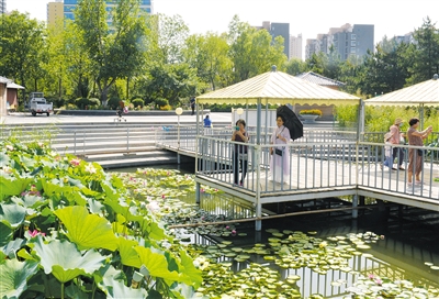 8月的古城墙护城河内,荷花、睡莲竞相开放、花香扑鼻,吸引了不少市民前来观赏拍照。近年来,我市园林部门注重提升护城河环境,精细打造荷花景观,共有睡莲、荷花及水生植物8000多平方米,护城河已成为市民观赏荷花和摄影爱好者的取景地。 本报记者 戎禹仁摄