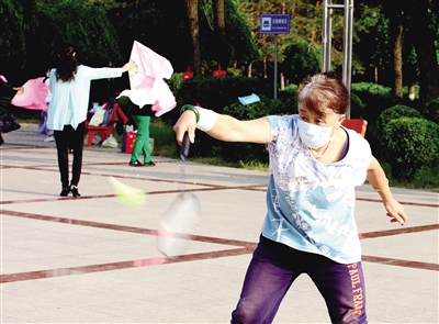 8月13日清晨,在我市滨河路御河生态园广场,前来锻炼身体的市民自觉佩戴口罩,并保持安全距离。市民们锻炼身体的同时,不忘做好个人防护,自觉遵守疫情防控的相关规定,真正做到了防疫健身两不误。 本报记者 韩堃摄