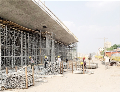 本报讯 (记者 张世敬) 近日,记者在同煤高架快速干线同煤标段工程施工现场看到,7月下旬完成的一联混凝土箱梁已经完成养护正在拆除支架,为下一步施工创造条件。