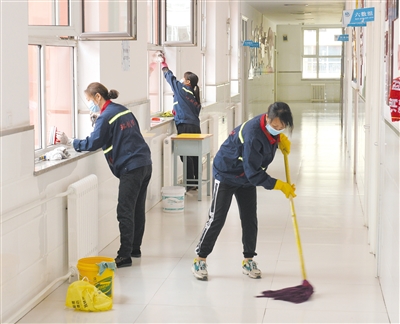 新学期即将开始,平城区环卫处环创保洁公司近期对49所中小学校的公共区域进行了全面彻底的卫生清理和消毒工作,为校园疫情防控护航,给师生营造一个干净整洁、美观舒适的校园环境。