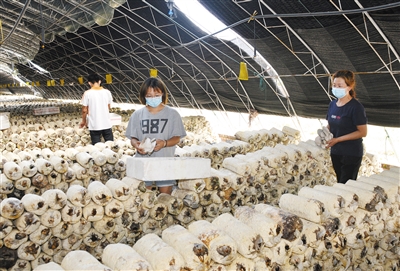 金秋时节,云州区党留庄乡上泉村食用菌种植基地内一片忙碌景象,村民们忙着加工菌棒,采摘平菇。近年来,该村大力发展平菇、袖珍菇、香菇等食用菌种植产业,每年种植规模达到30万个菌棒,让小菌菇成为支持农民增收、实现乡村振兴的“致富伞”。 本报记者 戎禹仁摄