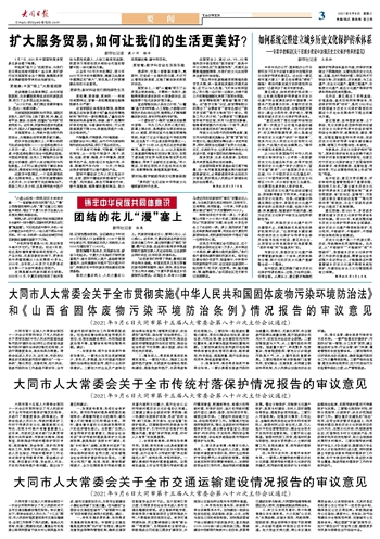 大同市人大常委会关于全市交通运输建设情况报告的审议意见