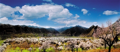 守口堡段长城位于阳高县境,据守狭小陡立的山口而得名,古称“雁门”,明代官办马市之一。守口堡长城依山势而走,古道两侧猴儿山、虎儿山墩台巍峨,雄踞关口。春天,守口堡如一幅迷人的画卷。山下果木成林,杏花像是报春的仙子,薄粉轻红,含情浅笑,似在邀人共赏春色。杏花、山川、原野、长城,好一派边塞风光。守口杏韵,已成为大同春天最美的标记。 |