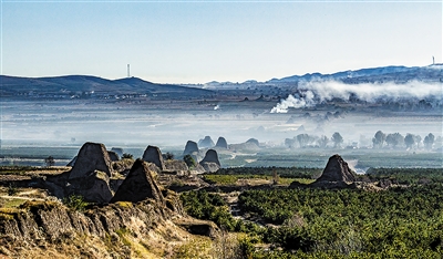 镇川口为明代长城关口,位于大同古城东北,新荣区与内蒙古交界处,为加强防守,修筑大量墩台,列于长城两侧。镇川长城建于明代嘉靖时期,长城边墙内设镇川堡、镇边堡两军堡,相距约25里,互为依仗。镇川口向西,长城蜿蜒伸入方山之上,在方山之巅向东眺望,长城绵延数十余里,墩台林立,气势磅礴。口东南采凉山耸立其后,万泉河由北向南襟带长城之间,山、水、边墙、墩台、大地、蓝天框镜一体,矗立在大地上的长城墩台更显雄伟壮观,是大同长城独有一景。 |