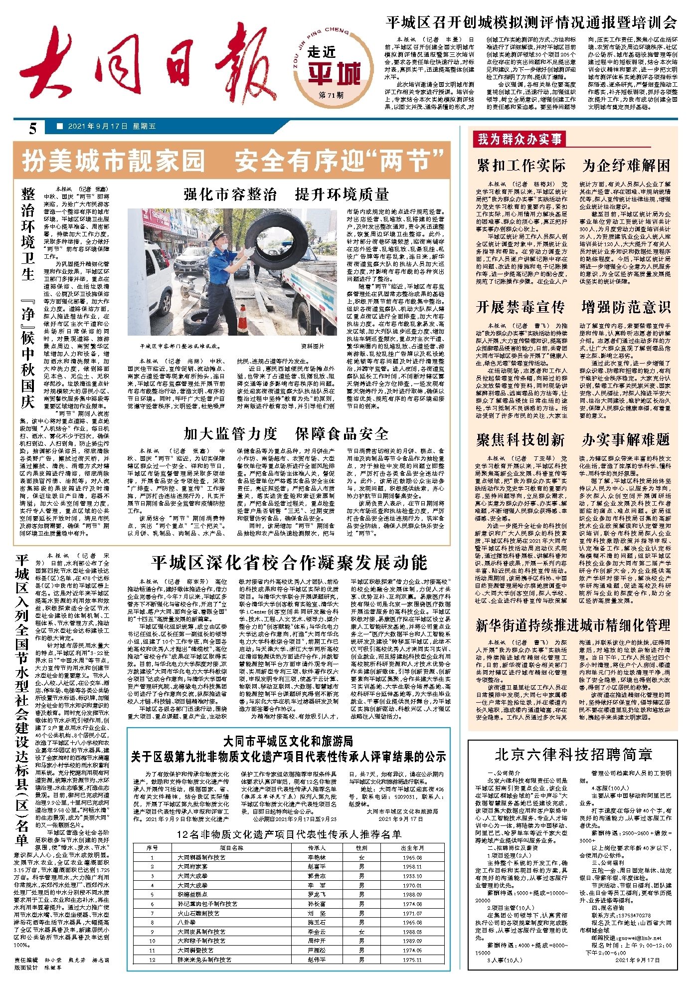 大同市平城区文化和旅游局 关于区级第九批非物质文化遗产项目代表性传承人评审结果的公示