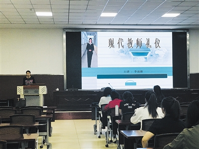 不学礼无以立,人无礼则不生,事无礼则不成,国家无礼则不宁。学习礼仪,不仅仅是时代潮流,更是提升学校形象、教师形象的现实所需,是学校文化和服务理念的体现。为了进一步规范教师的行为表达方式和仪态礼仪,提升自身修养,从而言传身教,为学生做好表率,该校特邀山西大同大学法学院党委书记、副教授李凌雁讲授教《现代教师礼仪》。李凌雁是国家二级心理咨询师,长期从事高校公共教育学、心理学及教师礼仪礼态等相关教学工作。她分别从教师礼仪的作用与内容两大方面入手,着重从仪容礼仪、服饰礼仪、仪态礼仪几方面为大家做系统培训,讲解如何应时、应景、应事,找准角色定位,做到扬长避短,塑造端庄、大方、含蓄、稳重、美观、和谐的教师形象。