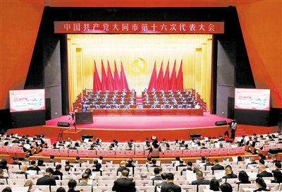 昨日的大会会场庄重简朴、气氛热烈。主席台上方悬挂着“中国共产党大同市第十六次代表大会”的会标,后幕正中,金色党徽熠熠生辉,十面鲜艳的红旗分列两侧。会场二楼眺台上悬挂着“高举习近平新时代中国特色社会主义思想伟大旗帜 牢记嘱托 感恩奋进 为大同全方位推进高质量发展而努力奋斗”的大型横幅,犹如声声战鼓,催人奋进。