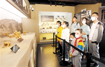 国庆期间,我市各大红色旅游景区游客络绎不绝。大同红色记忆馆在国庆假期的接待量明显增多,很多家长选择在这个假期带孩子一起参观红色文物与展品,重温红色历史、感受红色精神,激发爱国之情。图为家长带着孩子参观红色记忆馆。