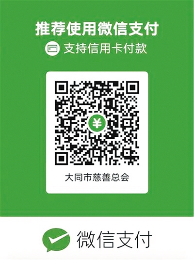 本报讯 (记者 锦秀) 连日来,我省遭遇强降雨侵袭,我市爱心人士纷纷伸出援手,截至昨日下午5时,市慈善总会共收到上百笔微信捐款和银行汇款,总计8万余元善款。 10月9日,市慈善总会向社会各界发出募捐倡议,暴雨无情,人间有爱,希望大家众志成城,同舟共济,大力弘扬“一方有难,八方支援”的优良传统,伸出援助之手,帮助灾区人民共渡难关。 市慈善总会工作人员介绍,捐款倡议发出后,很多爱心人士通过微信捐款,50元、100元、200元甚至上千元,还有一家爱心企业通过银行汇款的形式捐来善款,爱心汇集到一起,短短两日善款已经达到8万余元。 目前,市慈善总会开通3种捐款方式:1.微信捐款。捐款时请注明“山西抗洪救灾”(可扫下方二维码)。2.银行汇款。开户名称:大同市慈善总会。开户行: 中国银行大同北岳支行。账号:144204127690,汇款转账时请注明“山西抗洪救灾”。3.直接拨打爱心热线:0352-5557022联系捐款事宜。
