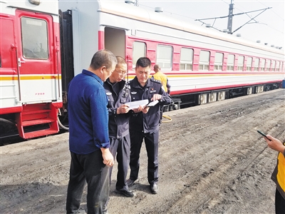 大同铁路公安处阳原车站派出所加强安全宣传,强化监督检查,筑牢安全屏障。图为近日,该派出所民警向铁路施工单位负责人宣讲安全知识,并签订安全协议。 段贵文摄