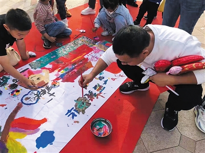 国庆期间,碧水云天·新河湾组织小区业主举办了一场“绘祖国亲子长卷绘画”活动。