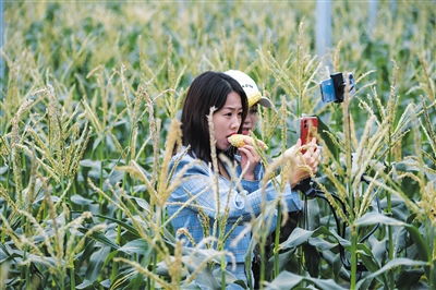 10月16日,在浙江省建德市蔬果小镇——航头镇航川村特色农业精品园里,别开生面的“玉见乡甜”玉米采摘节正式开启,包括玉米采摘、吃玉米比赛、玉米套圈、玉米时装秀、玉粉嘉年华等众多丰富的活动吸引游客和当地百姓前来感受丰收的喜悦。 新华社记者 徐昱摄