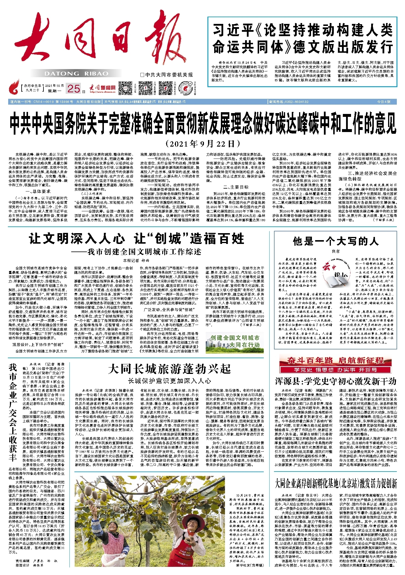 中共中央国务院关于完整准确全面贯彻新发展理念做好碳达峰碳中和工作的意见
