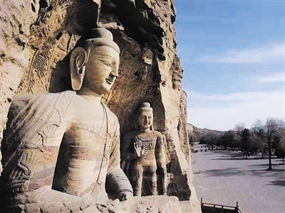 第一个问题是文献记载中的云冈石窟。《水经注》中说“武州川水,又东南流”。北魏郦道元《水经注·漯水》记载:“凿石开山,因崖结构,真容巨壮,世法所希,山堂水殿,烟寺相望。”《续高僧传·昙曜传》:“龛之大者,举高二十余丈,可受三千许人,面别镌像,穷诸巧丽,龛别异状,骇动人神,栉比相连三十余里”。