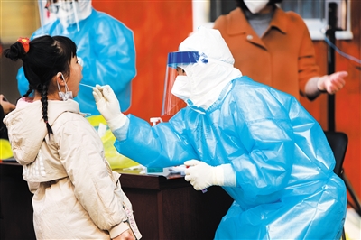 11月2日,医护人员为石家庄市深泽县东关村村民进行核酸检测。